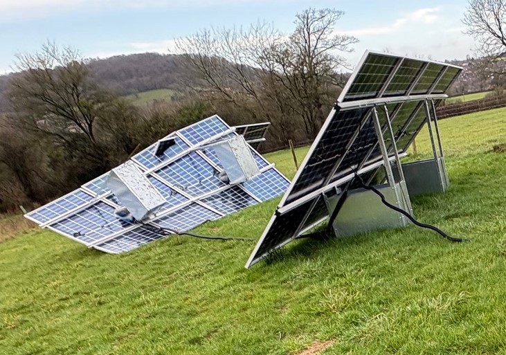 Storm Chandra at the end of January turned one row of our new ground mounted solar panels into the lesser known airbourne variety!