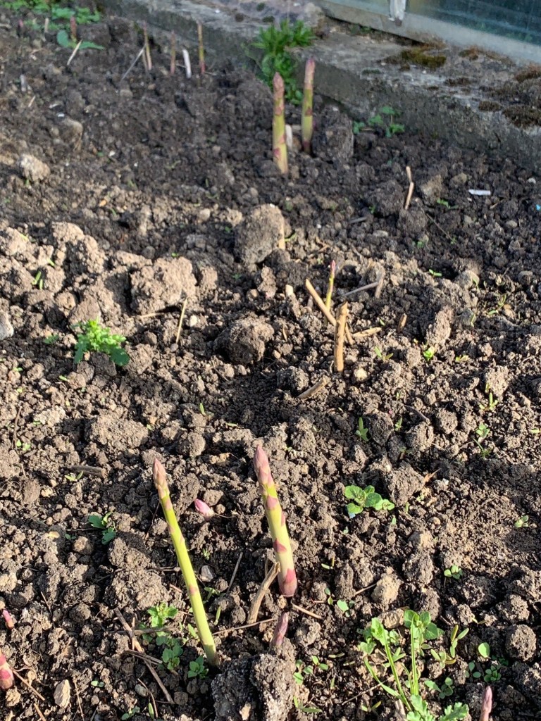 The asparagus bed has duly started sprouting, making a delicious addition in the kitchen to the already prolific wild garlic and rhubarb.