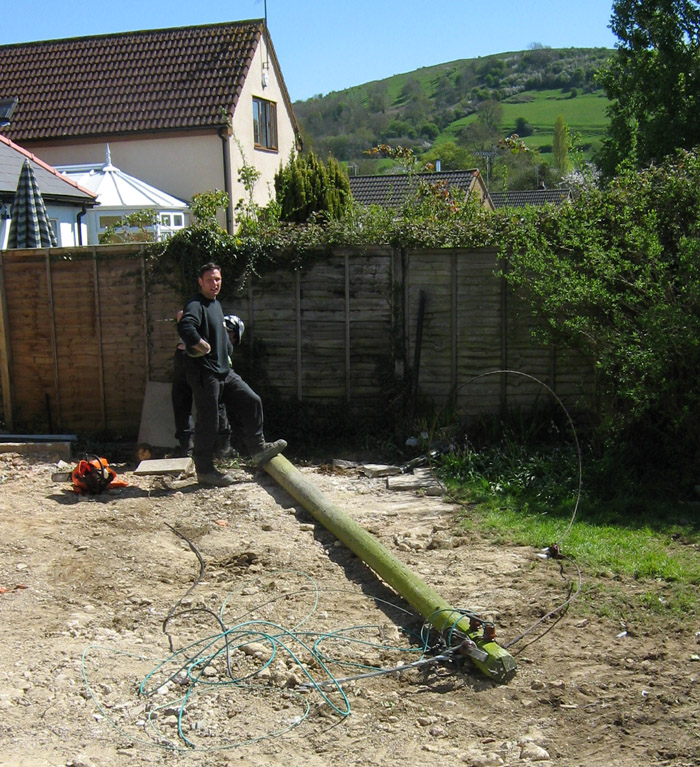 But the wire off it that delivered our mains electricity looked like it would be dangerously within reach of small children once the dormer was built. More importantly the pole was slap bang in the middle of the proposed foundations for the timber frame extension. It would have to go. Continue reading