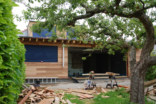 In the meantime the internal plastering and external cedar cladding were finished off, and the plumbing and fittings for the solar thermal panels installed.