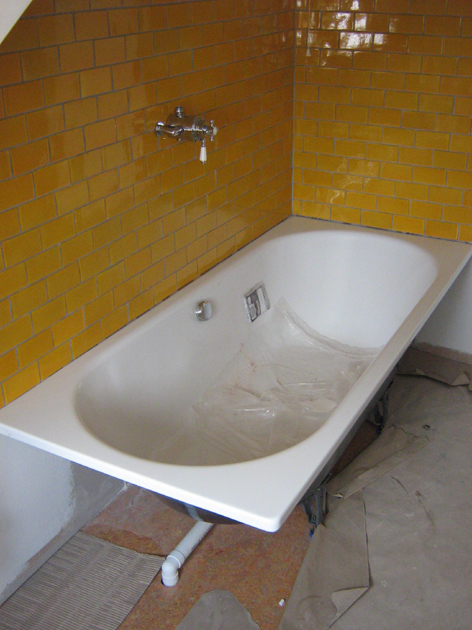 The engineered wood floor went in downstairs finishing the last element of the underfloor heating, radiators appeared upstairs, bathrooms were tiled and appliances installed.