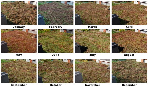 Meanwhile we’ve been keeping this record over the last year, which shows the subtle changes in the roof month by month as the winter purples turn almost pink in May before the lighter summer tones set in.