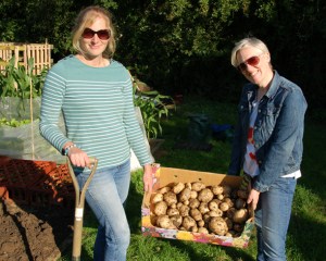Meanwhile, with both the veg patch and flower borders in full bloom, our visiting friends, Amanda and Amanda, spent a sunny afternoon harvesting the potatoes. We also grew some monster radishes, and pulled our second set of onions.