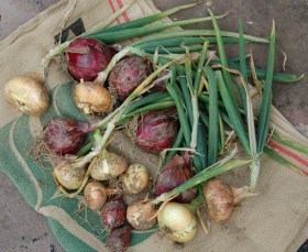 Regular readers will know that this year we over wintered some white onions for the first time, giving us an early harvest. In August we harvested a second set of later red onions. Well, they were meant to be red, but as you can see in the photo, clearly not everyone got the memo!