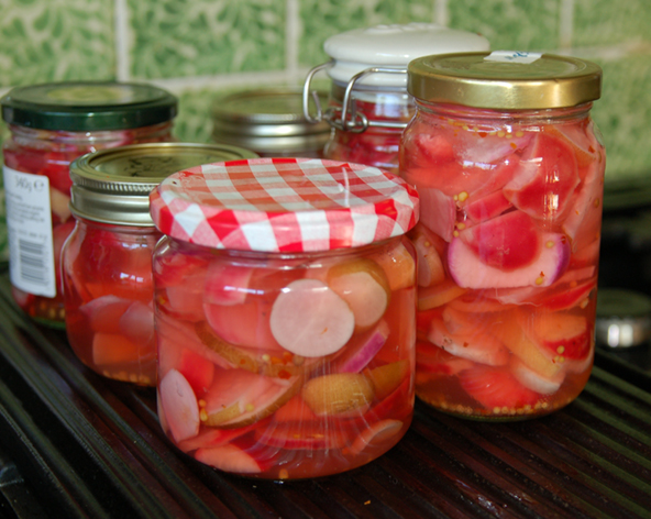 This year, one of our early harvest gluts was radishes, which all came in a rush, despite the weather.