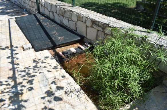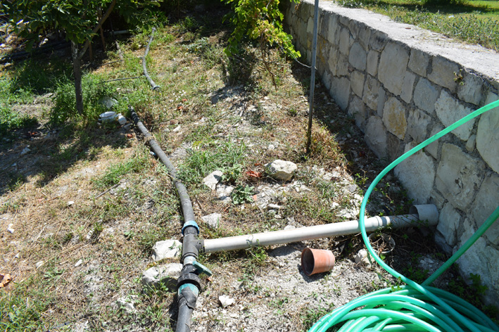 And the old outlet pipe for emptying the pool now feeds into the drip feed irrigation pipes to provide daily watering on the smallholding, before being topped up once again overnight by the spring.