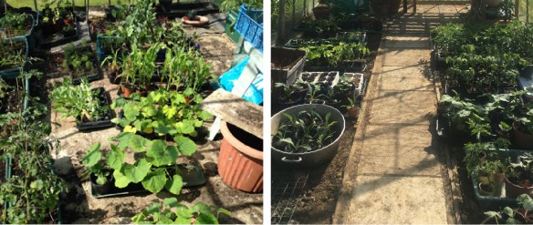 From last year’s random pots on carpet (left) to this year’s professional looking nursery (right).