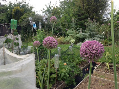 We have let the remaining elephant garlic flower. We know we shouldn’t really do this, putting energy into the flower instead of the bulb, but they look to so nice it seems wrong not to enjoy them at both ends!