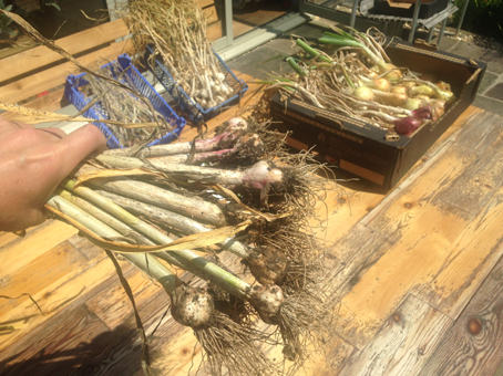 Meanwhile at the business end of things, we added the Lautree Wight hard necked garlic to the previous Marco soft necked garlic harvest.