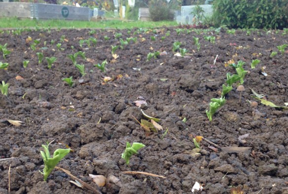 In the meantime, the same mild temperatures have also meant that our attempt this year at planting green manure has been its most successful ever, with the green manure establishing strongly before winter arrives (see picture below).
