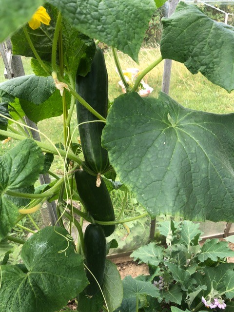 In the greenhouse, cucumbers started to come thick and fast for some very tasty Thai cucumber summer salads.