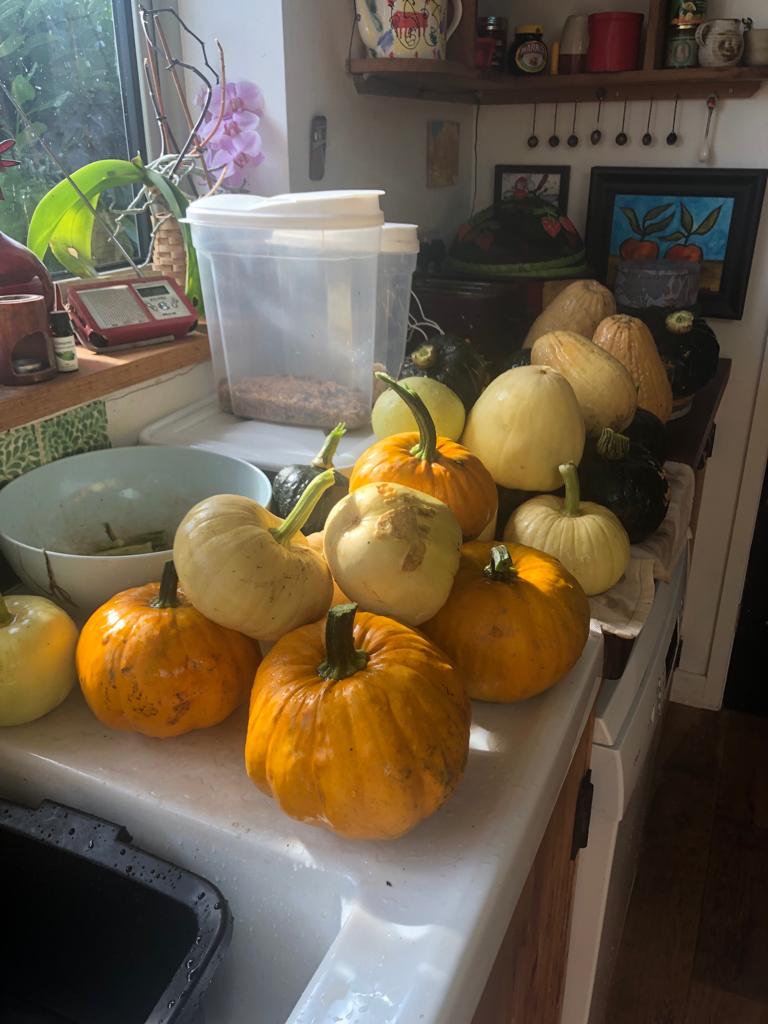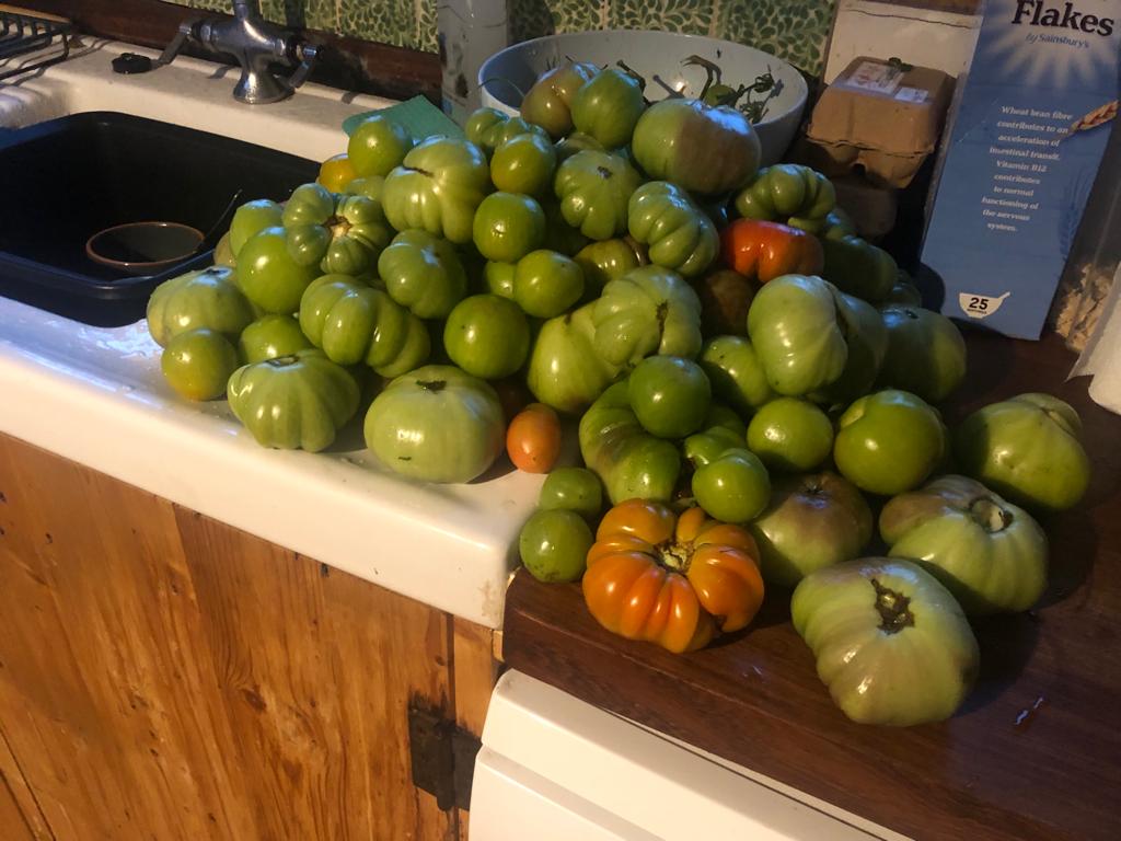 The outdoor tomatoes all started to rot in the persistent cold and wet, necessitating a green tomato salvage operation.We had to pull all our potatoes early too, as they also rapidly wilted under the autumnal summer weather.Others struggled on to harvest as best they could, even those in the greenhouse struggling to find enough warmth to ripen-up.Just when it looked like the greenhouse tomatoes would never ripen, September’s burst of late summer sunshine just managed to do the trick.September’s late warmth also helped the squashes hold on a bit longer, but they too started wilting early under the stress, leading to a slightly undersized harvest compared to past years.