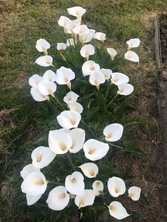 Fortunately some things seem to have enjoyed the very wet start, followed by May’s sunshine, showers and continuing cold, including the bluebells, our green roof, the asparagus and the calla lilies.