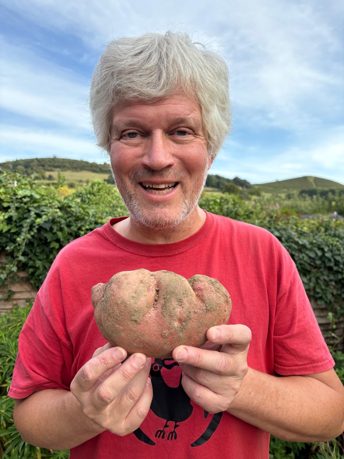 But harvesting our potatoes produced easily our biggest ever spud, weighing in at around 12 inches across. Now we’ve grown these Desiree potatoes before, and they are usually a good size, but we were expecting drought affected shrunken specimens this year for sure, not such a record-breaking monster.