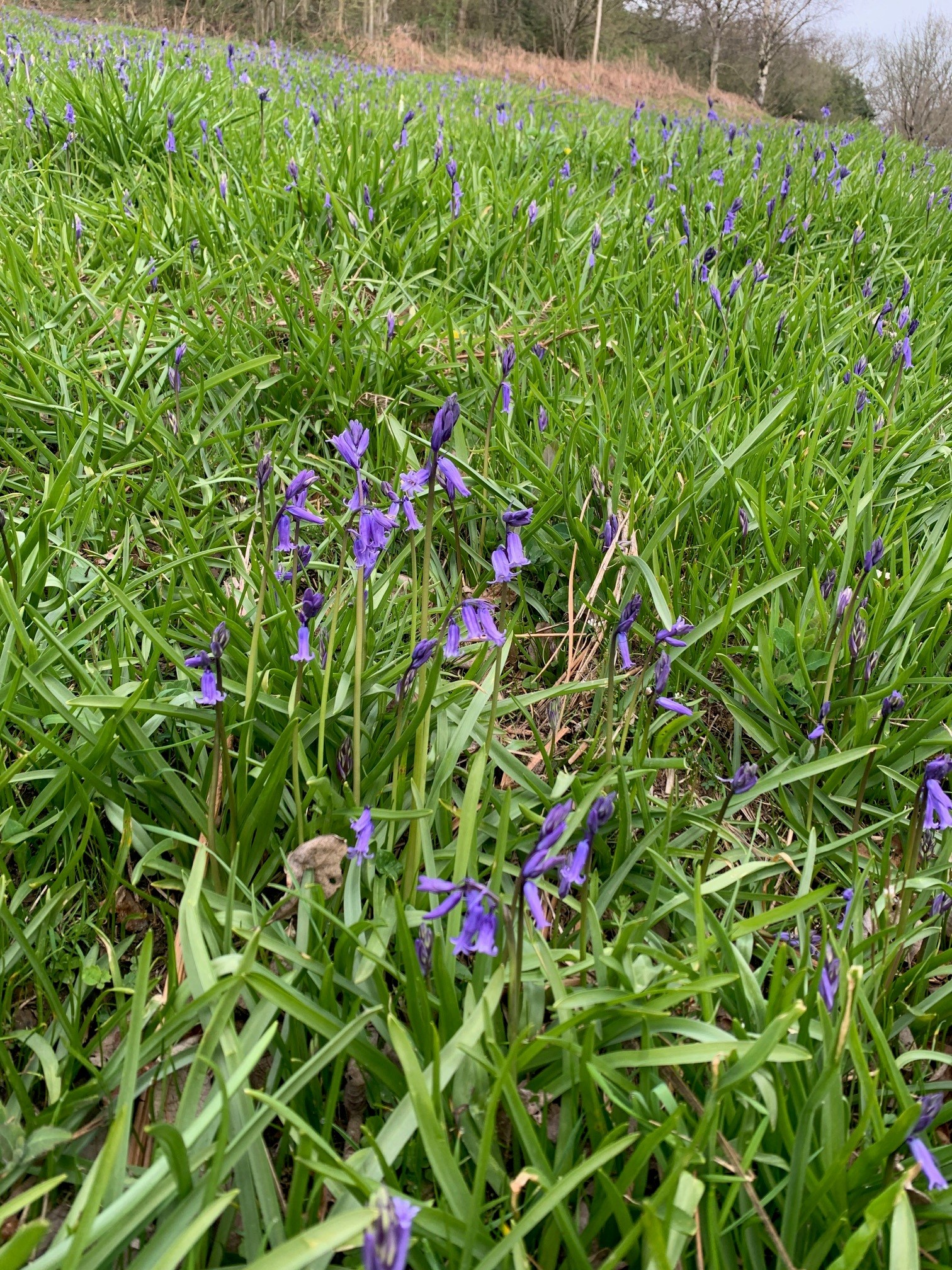 Nearby, the bluebells are appearing on the sunniest slopes of our local Peak and Long Down.